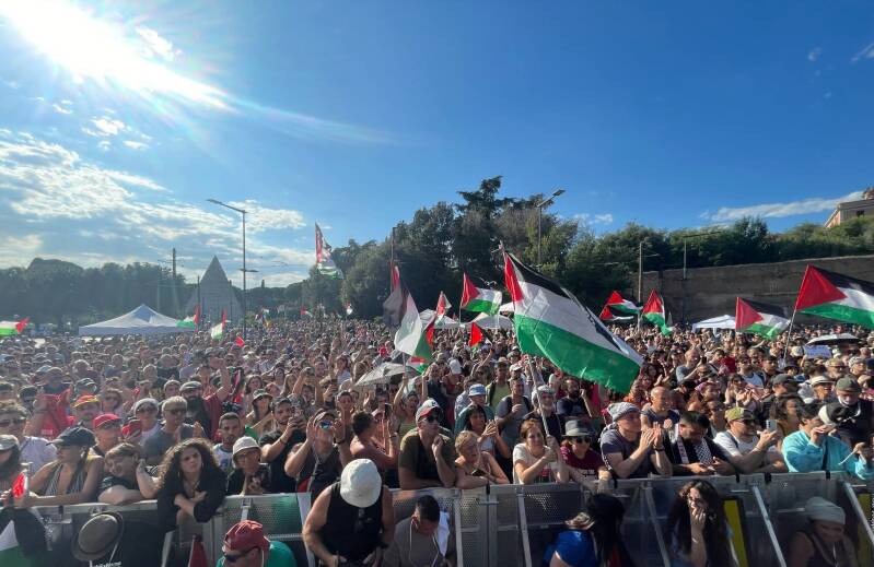 Vorrei davvero ringraziare con il cuore tutta la gente che ha partecipato e contribuito, gli artisti come Ghali, Mannarino, Daniele Silvestri, Margherita Vicario, Gemitaiz; persone coraggiose come Alessandro Di Battista , Francesca Albanese, Moni Ovadia, Ranucci, Rula Jebreal, Peter Gomez e tutti gli altri.